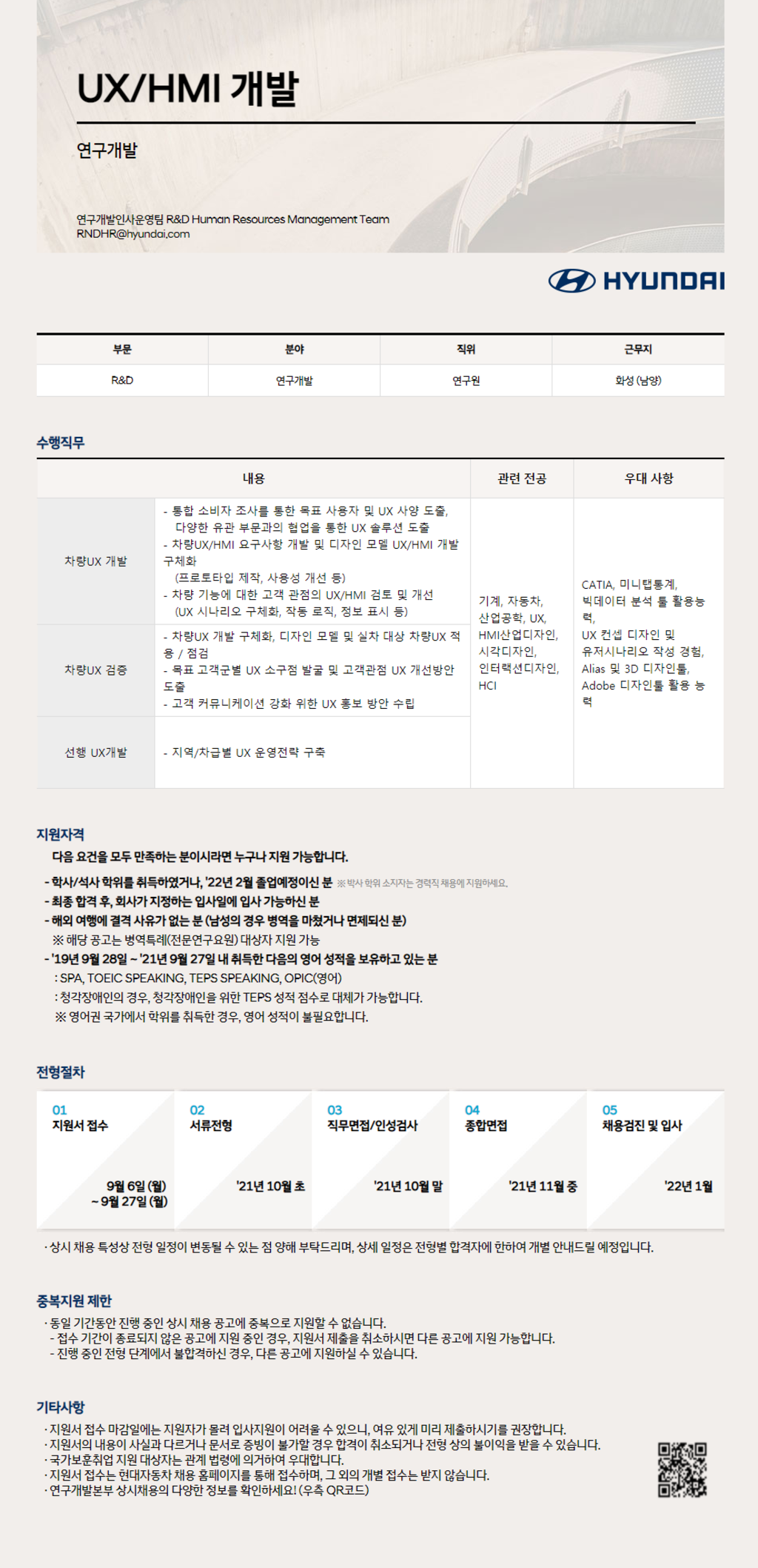 현대자동차 2021년 하반기 R D 부문 신입 채용 공모전 대외활동 링커리어